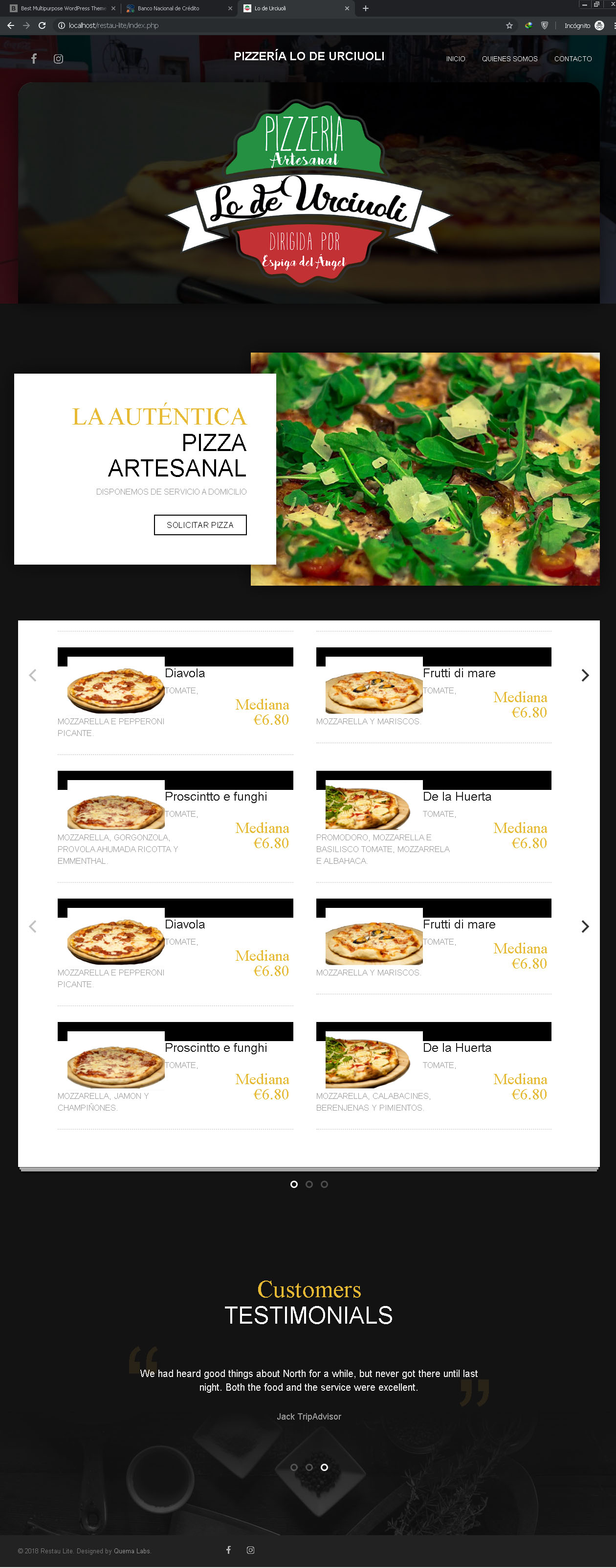 Es una página web hecha para una pizzería ubicada en España, fue reconstruida de una plantilla workpress y modificada para añadirle funciones no provenientes de la plantilla con el fin de darle un vistazo más atractivo. La misma funciona como un menú en línea donde los clientes pueden hacer sus pedidos.
