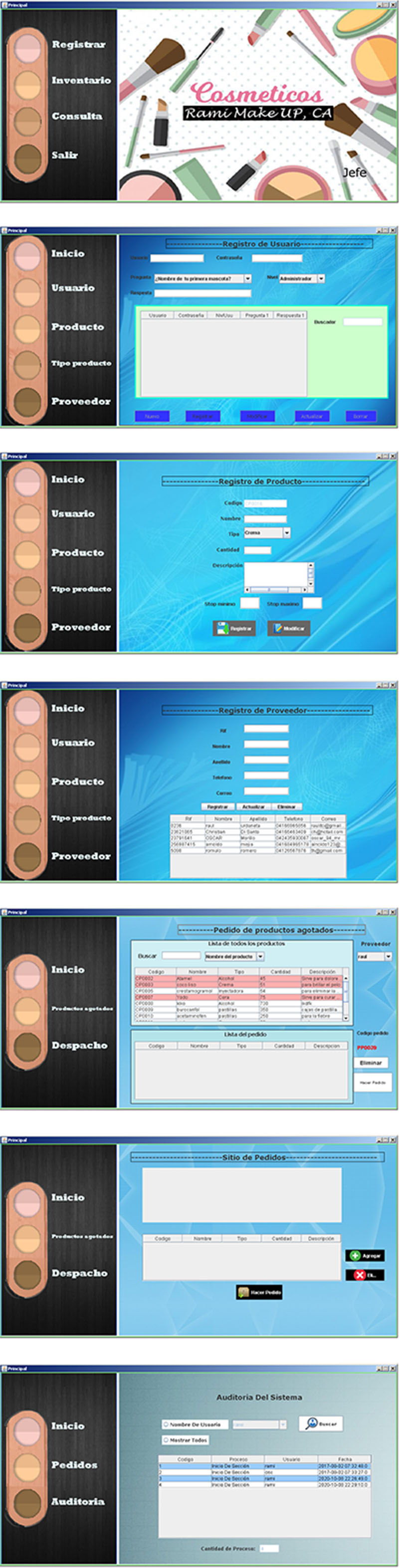 Se trata de una aplicación de escritorio hecha en java para una tienda de venta de cosméticos, la misma funciona como un control de inventario, con el que pueden llevar un registro de los productos que llegan y salen del almacén, cuenta con 2 niveles de usuarios.